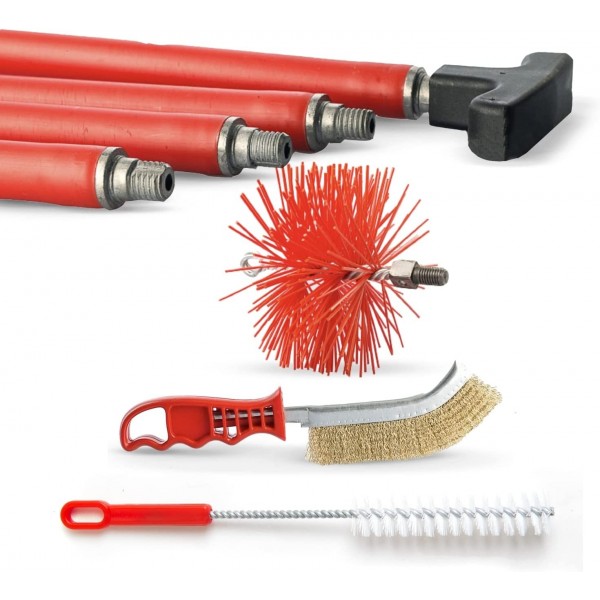 Set pulizia camma fumaria con lunghezza max di 6 metri e curvatura massima a 45 gradi.